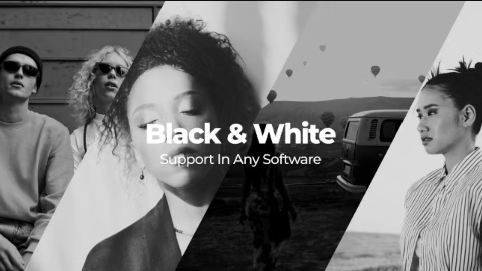 - Transform your color footage into captivating black and white visuals. Add an artistic touch, emphasizing contrast, texture, and composition.