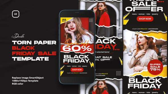 Explore the artistry of torn paper aesthetics with GFXInspire's Free Videohive 40657991 Torn Paper Black Friday Sale Instagram Stories. This After Effects template is not just a design; it's an experience that elevates your Black Friday promotions to a new level. Discover the features of this customizable template, and witness how torn elegance can transform your Instagram story.