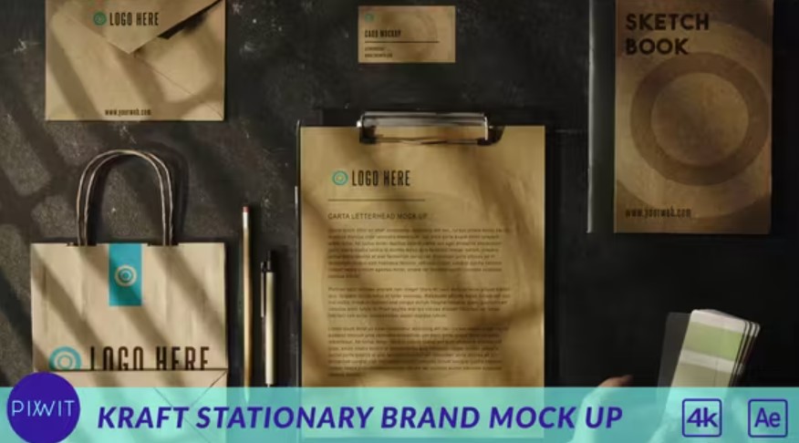 Free Videohive Template: Kraft Stationary Brand Mock Up - GFXInspire - Discover the elegance of Kraft Stationary Brand Mock Up, an exquisite After Effects template featuri
